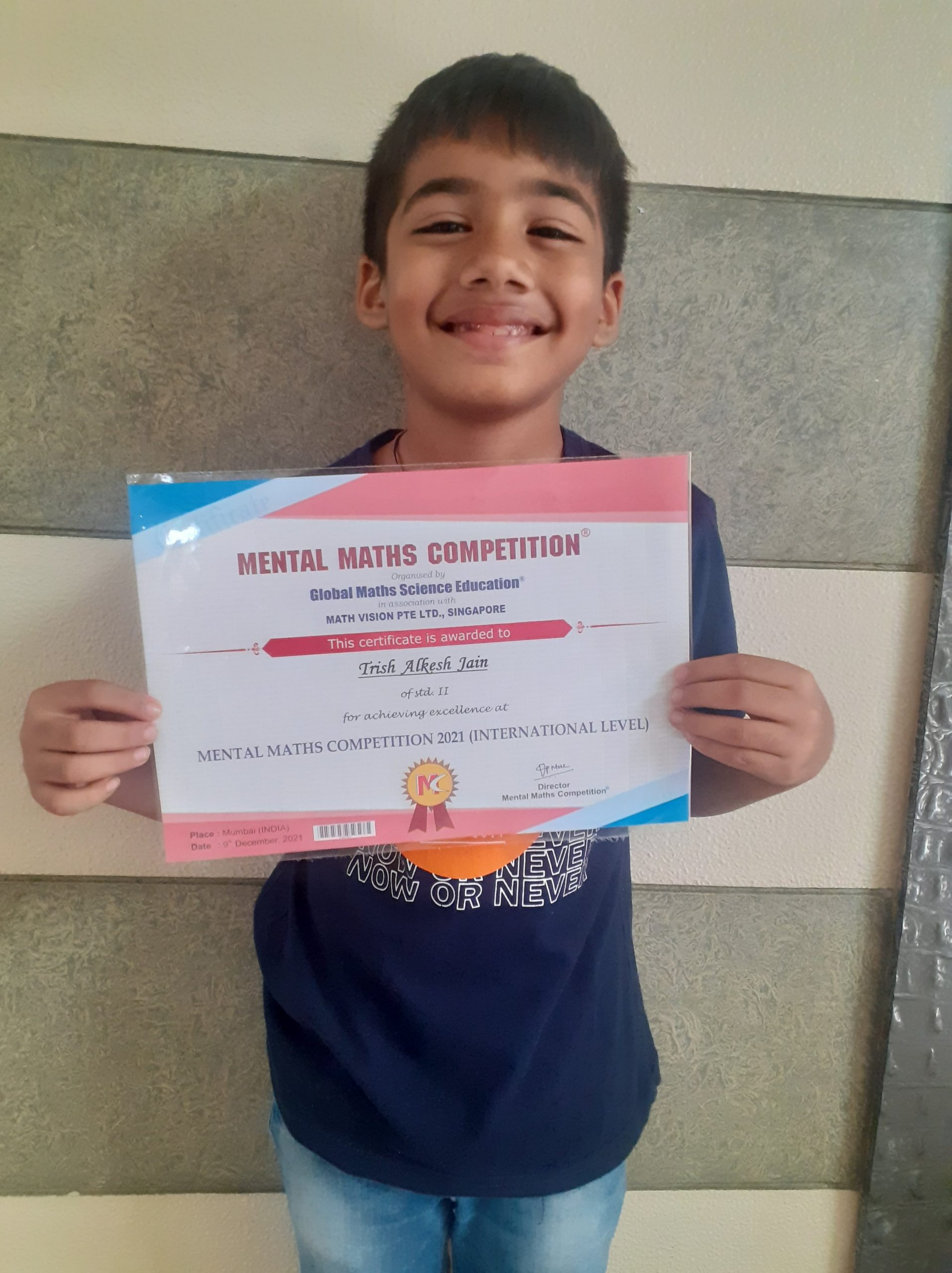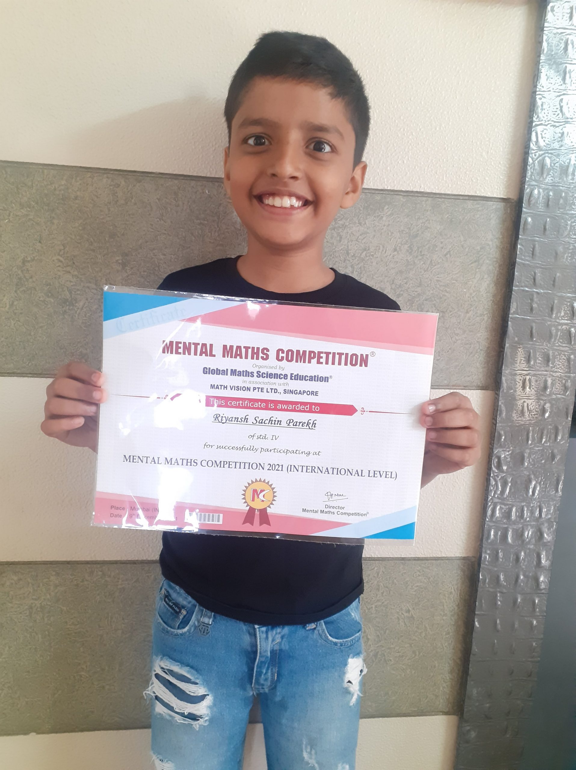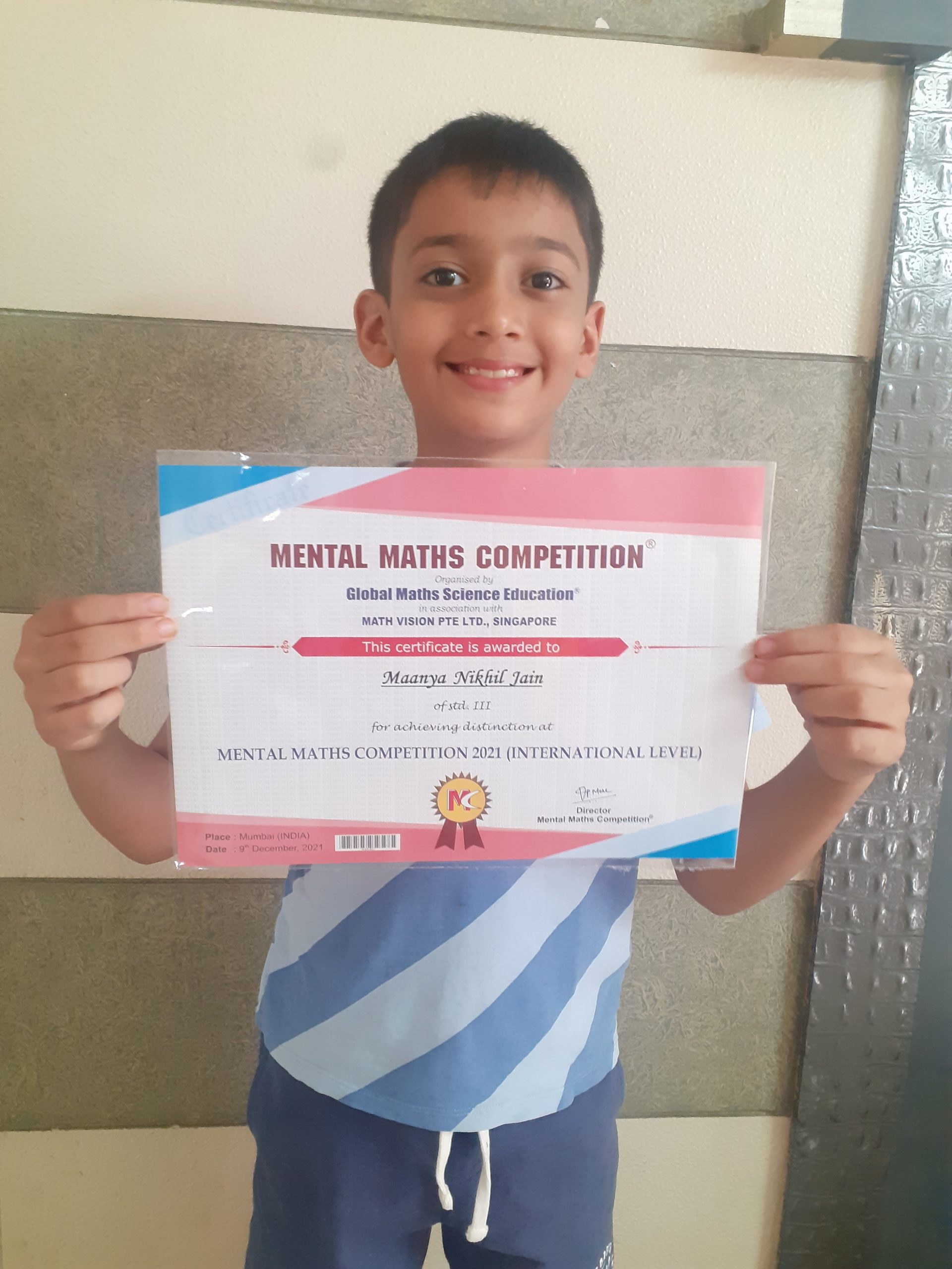 14th Rank in international level at Mental Maths Competition, 2021