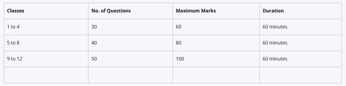 ● Open to all students from Classes 1 to 12. ● Conducted in respective schools during school hours. ● Schools can choose from two available examination dates.